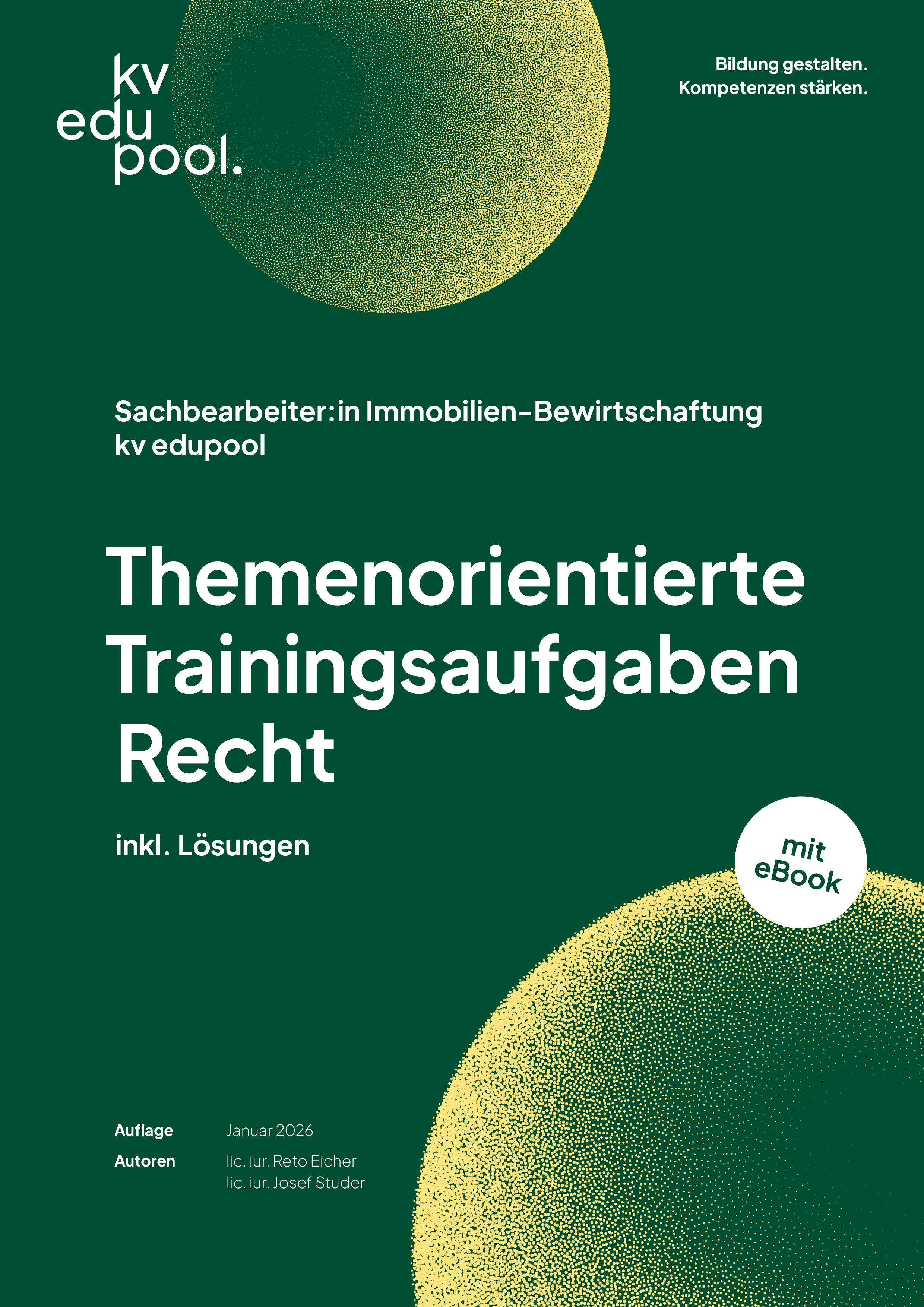 Die Trainingsaufgaben Recht wurden speziell für den Bildungsgang Sachbearbeiter:in Immobilien-Bewirtschaftung kv edupool entwickelt und sind angelehnt an das Lehrmittel Recht. Die umfassende Aufgabensammlung mit Lösungen kann sowohl zur Prüfungsvorbereitung als auch als Nachschlagewerk im Arbeitsalltag eingesetzt werden. Mehrwert für Dozierende und Studierende: - Die Aufgabensammlung enthält Übungen für den Unterricht und Aufgaben, die die Teilnehmenden zu Hause lösen und mit den Musterlösungen vergleichen können. - Die Aufgabensammlung ist im Stil der kv edupool Prüfungen geschrieben. - Die Trainingsaufgaben sind auch digital als eBook erhältlich (der Code ist in der Papierversion eingedruckt), damit die Teilnehmenden auch "elektronisch" üben können.